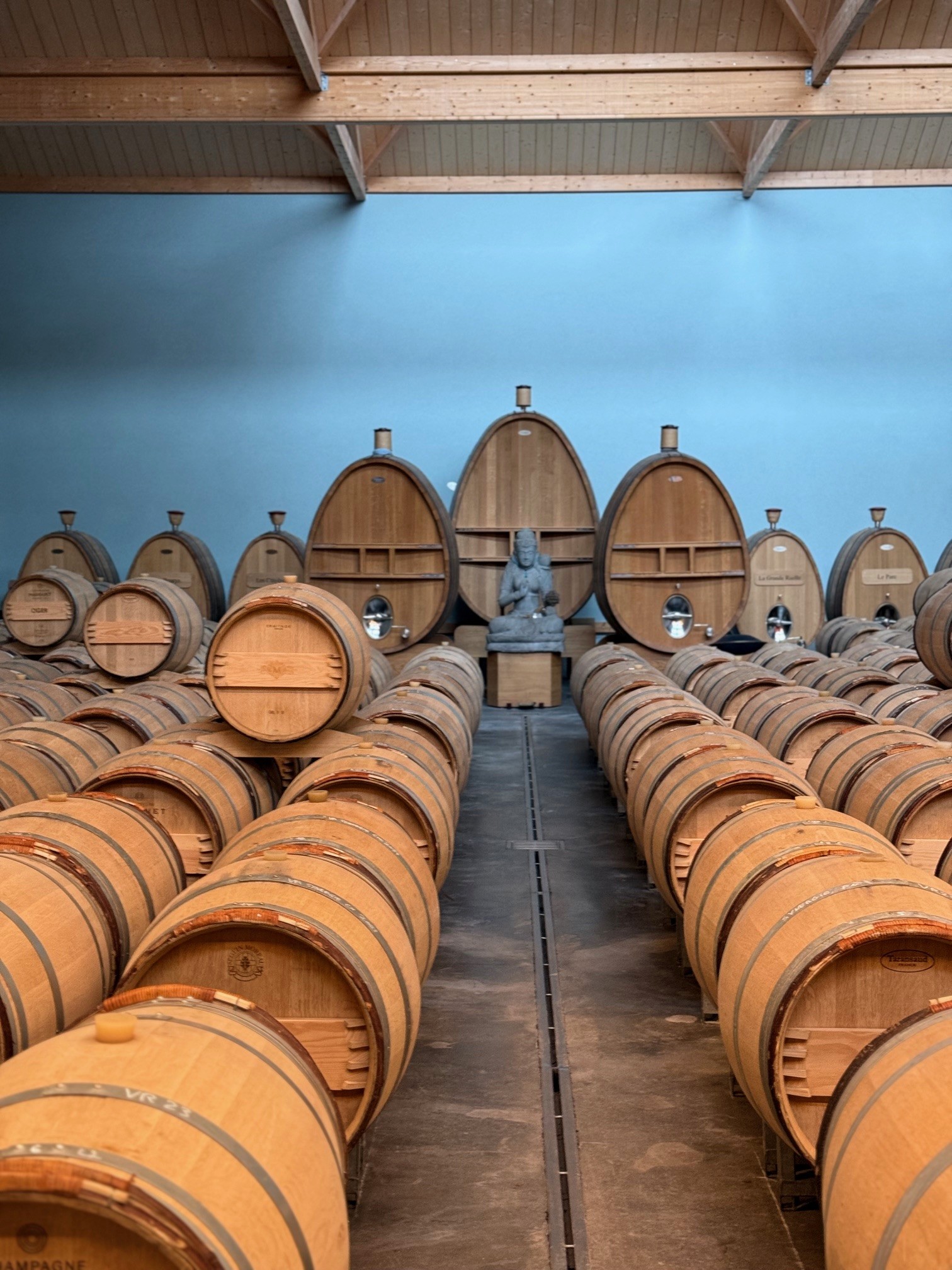 On each of Benoît’s labels, you’ll see little circular images, symbols with trees and expanding roots, rainbow colors, references to sacred geometry, a human figure seated in the lotus position. Marguet is a deep practitioner of biodynamic farming; he’s been certified by both Ecocert and Demeter since 2008, a move in the heart of Grand Cru territory that for years earned Benoît a fair amount of critical and sometimes unwanted attention from his contemporaries. He’s also just a spiritual sort of fellow, talking often about the harmonies between plants, people, the planets, and the soil. If you’re a committed empirical or materialist person, all of Marguet’s talk can strike as woo-woo, but it’s genuinely felt and deeply practiced. All actions in the vineyards and in the cellar are guided by not just the lunar calendar but by other planetary movements. There are amethysts around. Benoît is well-known for draft horse farming, vegetal and floral tisanes instead of chemically-derived organic treatments, spontaneous fermentations, brut-nature secondary fermentation and even a fair quantity of Champagnes bottled without any sulfur additions at all. Similarly, all of the wines produced at Champagne Marguet are aged in wood – “Have you ever slept in a stainless steel bedroom?” asks Benoît, by way of explanation. Barrels are all between 1 and 9 years old and of various sizes and cooperages –from standard 225s to custom made 1000 liters from Taransaud designed to maximize convection. Perhaps most intriguingly, Benoît makes it a point to keep the cuvée and taille of his wines together, noting that they “spent their whole life together in berry, so why not some more time in barrel.”